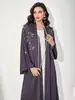 Abaya Venda Quente Novo Cardigan Quente com Diamantes Vestido Casual Muçulmano Feminino Roupas Quente Cruzada com Diamantes Roupão