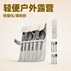 Talheres de Aço Inoxidável para Exterior Transfronteiriços em Estoque, Conjunto de 6 Peças de Garfo e Colher, Bolsa de Armazenamento com Rolo, Talheres Portáteis para Camping