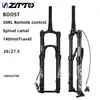 Suspensão Dianteira para Bicicleta de Montanha 27.5 Tubo Cônico Controle por Cabo Eixo Passante Curso 140 Liga de Magnésio Garfo a Ar Suspensão Dianteira Travável