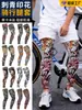 Mangas de Perna para Proteção Solar Transfronteiriças Lycra Respirável Esportes de Ciclismo Protetores de Perna Estampa de Tatuagem Tiras Antiderrapantes de Silicone Joelheiras de Seda Gelada