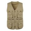 Colete Cáqui Utilitário Multibolsos Primavera e Outono Masculino Fotografia Casual Pai de Meia-idade Jaqueta Colete Masculino