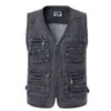 Colete masculino de algodão lavado em denim, tamanho grande, para primavera e outono, ideal para meia-idade e idosos. Possui vários bolsos, estilo casual, perfeito para pesca. Modelo D88.