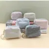 Bolsa de Moedas Pequena Quadrada Fragrante com Lantejoulas e Linhas Verticais em Nova Cor Macaron, Bolsa com Chaveiro para Armazenamento