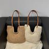 Férias à beira-mar Viagem de lazer Praia Tecido Bolsa Feminina Palha Tecida Verão Simples Ombro Redondo Portátil Palha Tecida Bolsa