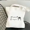 Bolsa de lona simples ins grande capacidade fofa estampa de gato de desenho animado bolsa escolar para estudante bolsa tote de ombro único personalizada