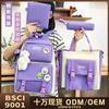 Nova cor de contraste Harajuku estilo coreano estilo moda bonito menina de quatro peças conjunto de ensino fundamental alunos da escola primária mochila do campus
