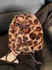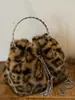 Bolsa Pequena de Pelúcia Retrô Casual Feminina Nova Moda Primavera Bolsa de Mão Estampa de Leopardo Bolsa Balde Bolsa Transversal com Corrente
