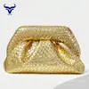 Moda Casual Retro Europeia e Americana Cor Lisa Padrão Trançado Pu Estilo Ocidental Banquete Elegante Forma de Metal Única Bolsa de Embreagem
