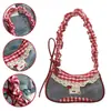 Bolsa de armazenamento pequena de jeans para segurar na mão bolsa de ombro pequena para o dia a dia e trabalho bolsa de axila cor de xadrez preto color block