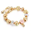 Rosa de ouro rosa charme menina pulseira presente com cristal diamante maple folha contas pingente pulseira de jóias lote