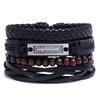 Joias Mais Vendidas Transfronteiriças Conjunto Criativo DIY de 4 Peças Pulseira Retrô Simples Ajustável Pulseira Trançada de Couro Bracelete