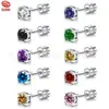 Brincos de ametista simples de quatro garras, brincos de tesouro coloridos europeus e americanos, joias de orelha unissex, diamante vermelho, zircônia azul