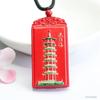 Pingente de Areia Vermelha de Cinábrio Jianyu Pintado com uma Torre da Sabedoria, Enfeite Pendente Feito de Cinábrio, Benefícios de Transmissão ao Vivo, Atacado e Dropshipping S4070908