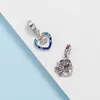 Panjia 2025 Desenho Animado Azul Prata Liga Coração Diamante Pingente Pulseira Miçangas DIY Acessórios de Joia