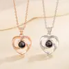 Colar de Projeção de Coração Mais Vendido na Amazon Transfronteiriço 100 Tipos de Linguagem Eu Te Amo Pingente de Coração de Pêssego Presente de Dia dos Namorados
