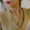 Colar de ouro 18K banhado a aço titânio com preservação de cor atualizada, colar de corrente de osso de cobra de aba larga, corrente de clavícula curta, elegante e simples europeia e americana