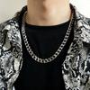 Colar de liga retrô europeu e americano, hip hop, rap, personalidade, colar masculino, fivela plana, diamante completo, corrente de 12 mm de espessura, corrente cubana, tendência