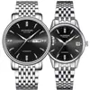 Relógios de Casal, Mecânicos, Totalmente Automáticos, Pulseira de Aço, Simples, Elegantes, Calendário Duplo, Relógio Luminoso, Um para Homem e Um para Mulher, Podem ser Gravados