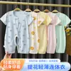 Macacão de Gaze de Algodão Bambu para Bebê Recém-Nascido Verão Manga Curta Bebê Verão Fino Respirável