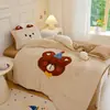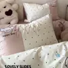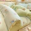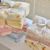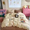 2025 Conjunto de Quatro Peças de Algodão com Bloqueio de Cores Frescas e Fofas, Bordado de Desenho Animado, Versão Ab, Conjunto de Quatro Peças Creme Bordado
