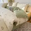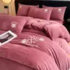 Novo Conjunto de Quatro Peças Bordado Cor Pura de Veludo Cristal Veludo Leite Veludo Bebê Veludo Coral