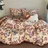 2026 novo conjunto de quatro peças de algodão puro fresco estilo ins Gola Fair Isle gatinho conjunto de quatro peças estampado 100% algodão