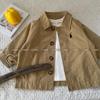 Casaco de cor sólida infantil, primavera e outono de 2024, novo casaco de comprimento médio para meninos e meninas, jaqueta para bebê