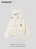 Jaqueta Acolchoada de Algodão com Capuz, Gola de Pelo e Estampa de Urso com Bolinhas para Mulheres e Homens, Lançamento Inverno 2025, Jaqueta Quente de Casal