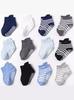 [Cinco pares] Primavera e Verão novo 0-12 anos de idade meninos e meninas malha listras luz respirável meias do bebê atacado