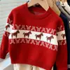 2025 Nova Roupa de Inverno e Outono para Crianças Suéter Pulôver de Tricô Elemento de Natal Infantil Camada Base Jacquard Dupla Camada Ins