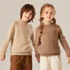 Outono e inverno engrossados para crianças Novo 100 Pure Cashmere Malha Camisola Meia-gola Alta Base Base Quente Camisa para Meninos e Meninas