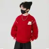 Suéter de Tricô com Gola Vermelha de Ano Novo Unissex para Bebê Suéter Grosso Infantil Quente Macio Estilo Coreano Moderno