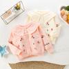 Cardigã Suéter Infantil Outono e Inverno Novo Menina Bordado Cereja Tricô Tops Fofo Gola Boneca Tricô Top