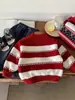 Suéter de Lã Estilo Coreano para Crianças, Unissex, Tricô Espesso, Ano Novo, Bebê, Pulôver Listrado, Camada Base, Roupas Quentes