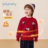 Suéter Jerry para Bebês Meninos Outono Inverno Espessado Infantil Gola Redonda Quente Vermelho Top Suéter de Lã para Bebê Roupa de Ano Novo