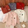 Suéter Infantil 2025 Outono Estilo Coreano Novo Produto Meninos e Meninas Suéter Bordado Love Cardigã Tricotado Casual para Bebê