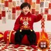 Traje de Ano Novo Roupas Infantis Meninos e Meninas Inverno Mais Veludo Novo Estilo Festivo Roupas de Saudação de Ano Novo Crianças Pequenas e Médias Desenho Animado Conjunto de Duas Peças