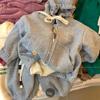 Novos Conjuntos Esportivos e Casuais Cinza Veludo para Meninos e Meninas, Moda Coreana Primavera e Outono com Zíper Tendência de Roupas de Outono
