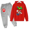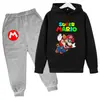 Conjunto Moletom Manga Longa Estampa Desenho Mario 2025 Infantil Primavera Meninos e Meninas 2 Peças Calça + Moletom com Capuz