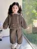 Comércio Exterior Meninos e Meninas Estilo Inverno Bordado com Lantejoulas Conjunto com Forro de Pelúcia 2026 Novo Conjunto Casual Elegante de Duas Peças Roupas Infantis Dropshipping