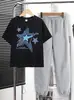 Comércio Exterior Europeu e Americano Amazon Verão Novo Mais Vendido Estampa de Estrela Conjunto de Roupas Infantis Camiseta de Manga Curta Calças para Crianças de Tamanho Médio e Grande