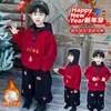 Conjunto Festivo de Moletom com Capuz e Calça para Bebês e Crianças Pequenas e Médias Outono Inverno Novo Estilo Coreano Solto Conjunto de Roupa com Saudação de Ano Novo