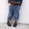 Roupas infantis personalizadas de estilo coreano para meninos e meninas, estilo coreano, cintura média, calças com grandes bolsos frontais e traseiros, calças jeans elegantes e fáceis de combinar
