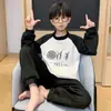 Pijama Infantil Transfronteiriço Outono e Inverno Algodão de Ar Meninos Gola Redonda Manga Longa Adolescentes e Estudantes Espessado Quente Roupa de Casa