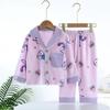 Pijama Infantil Estilo Primavera e Outono Gaze de Algodão Puro Cardigã Fino Meninos Meninas Manga Três Quartos Conjunto de Roupas de Casa para Bebê