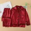 Pijama Infantil Meninos Conjunto Manga Longa de Seda de Gelo Primavera Verão Seda de Imitação Criança Grande Menina Cardigã Vermelho Vibrante Roupa de Casa