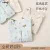 Conjunto de Roupas para Casa de Bebê Estilo Primavera e Outono 2026 Novo Decote V Camada Dupla Gaze Pajamas de Algodão Puro Gaze para Meninos Quatro Estações