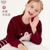 Pijama para meninas Outono e Inverno Infantil Novo Meio-lado Veludo Roupas para Casa Bebê Grande Ano Novo Vermelho Coral Quente Terno de Veludo