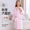 Novo Roupão Infantil com Capuz Gaze de Seis Camadas Espessada Outono e Inverno Longo Adulto Roupa de Casa Camisola Roupão