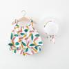 Verão novo feminino Bebê Praia alça estampa conjunto de 3 peças para enviar chapéu de palha meninas moda shorts uma geração de cabelo
